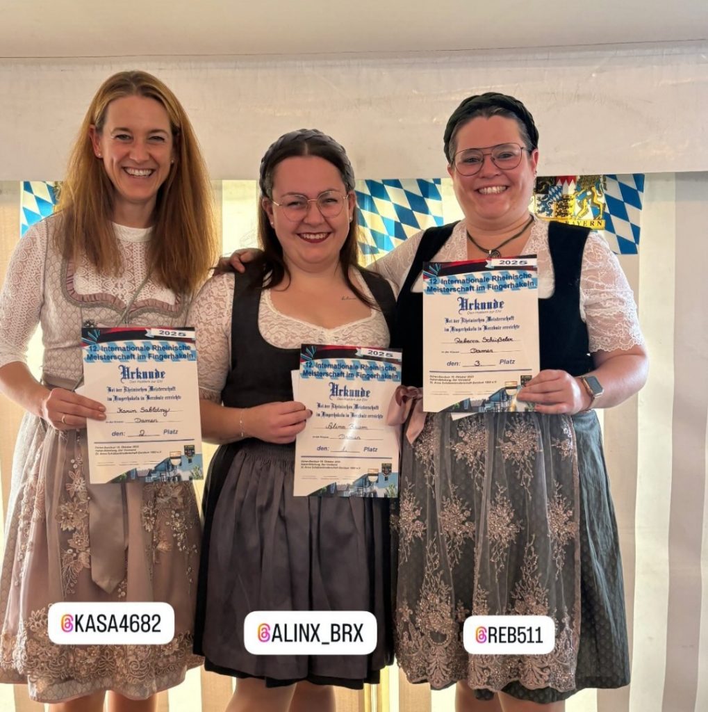 Bei den Damen sicherte sich Alina Briem zum wiederholten Male den Titel als Intern. Rheinische Meistern im Fingerhakeln. Sie konnte sich letztlich im harten Kampf gegen die starke Karin Sablotny durchsetzen, die sich damit den 2.Platz sichern konnte. Den dritten Platz belegte Rebecca Schüßeler.